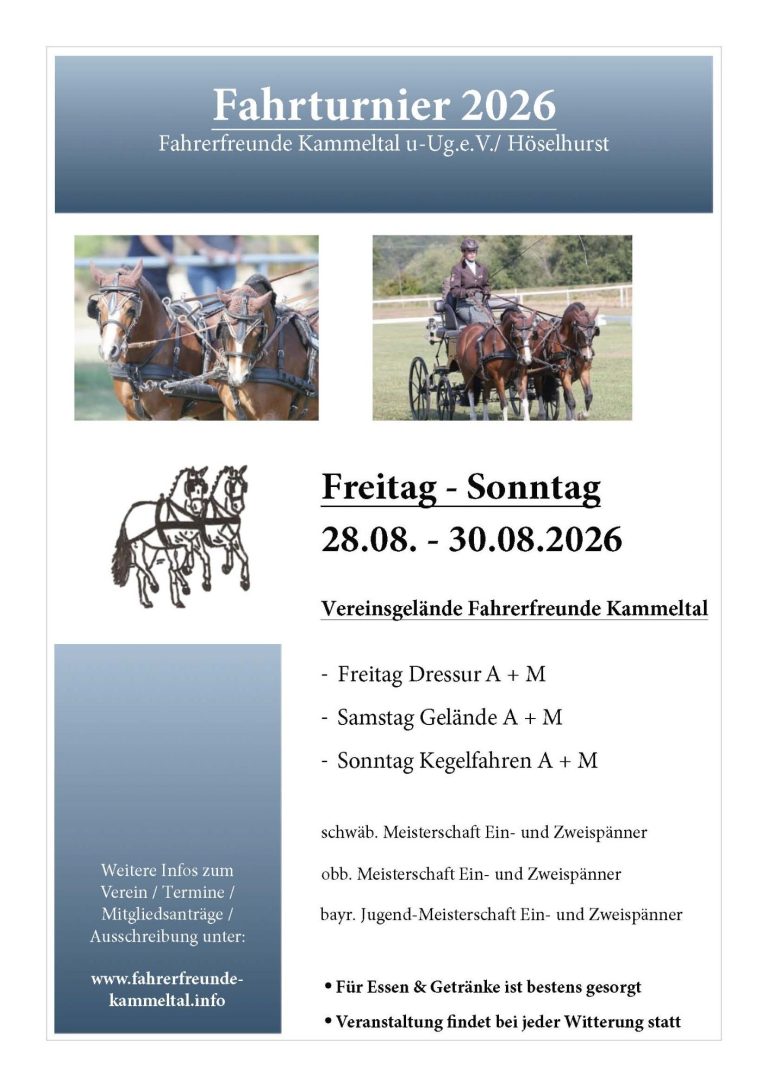 Auf dieser Internetseite möchten sich die Fahrerfreunde Kammeltal und Umgebung u. Ug. e. V. allen Pferde- und Fahrbegeisterten, allen die mit Pferd und Kutsche oder nur mit Pferden unterwegs sind, vorstellen.